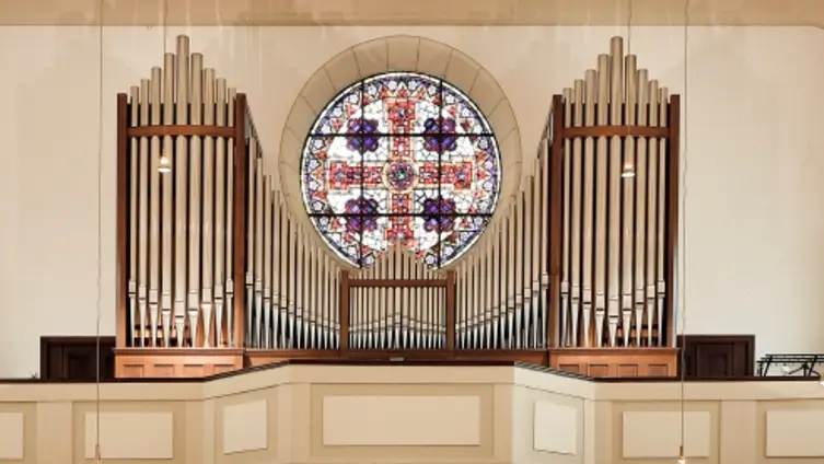 Die Orgel auf der rückwärtigen Empore wurde 1990 von Karl Schuke gebaut und verfügt über 21 Register mit mechanischer Spiel- und Registertraktur. Die Empore ruht auf Säulen mit kunstvoll gestalteten Kapitellen. Im Kirchenschiff beeindruckt zudem der blau-goldene Sternenhimmel, der bei der Renovierung 2004 wieder in seinem ursprünglichen Zustand von 1911 freigelegt wurde.